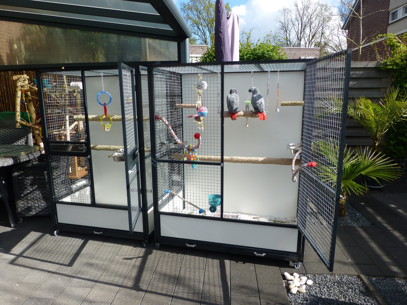 Onderstaande foto's zijn afkomstig van een klant uit Sittard welke zeer tevreden was over de levering van de eerste kooi dat hij ook een kooi voor buiten heeft besteld.