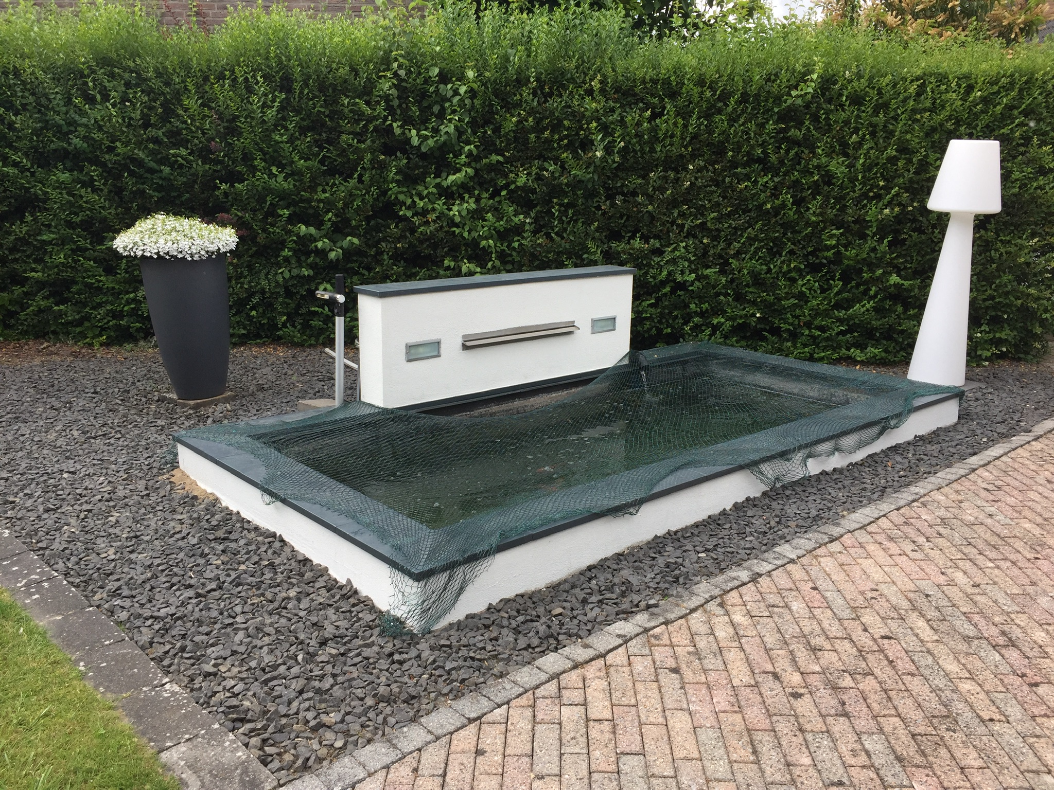 Hieronder de nieuwe situatie met de aluminium vijverpanelen.